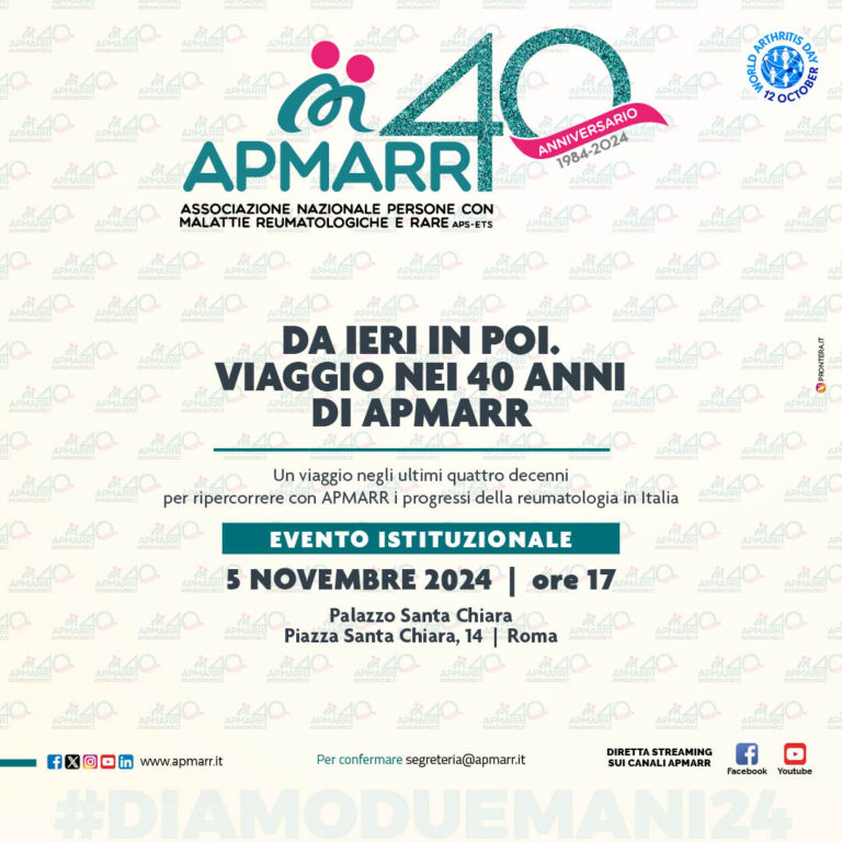 APMARR Associazione Nazionale Persone con Malattie Reumatologiche e Rare APS ETS, celebra quest’anno i 40 anni dalla sua fondazione.parità nell’accesso alle cure”