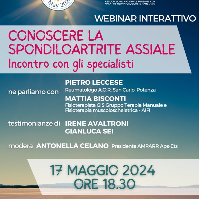 Conoscere la spondiloartrite assiale – Webinar 17 maggio 2024 ore 18:30
