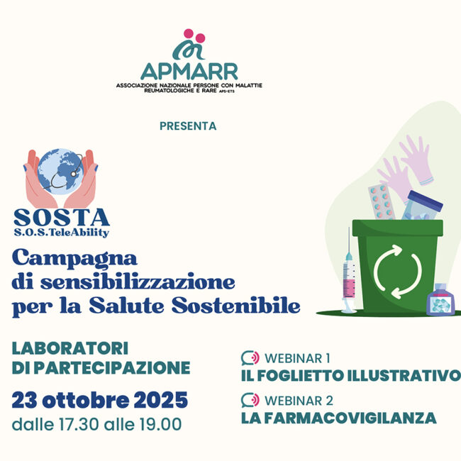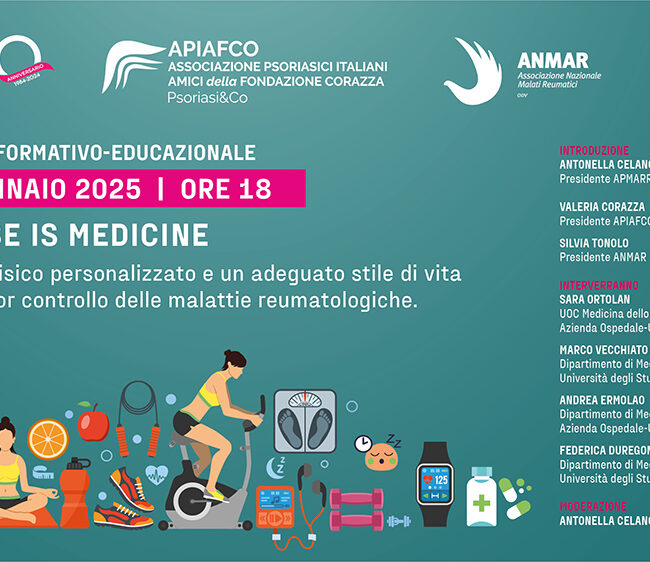 Giovedì 16 gennaio, alle ore 18.00, si terrà il webinar “Exercise is Medicine – patologie reumatologiche”, organizzato da APMARR Associazione Nazionale Persone con