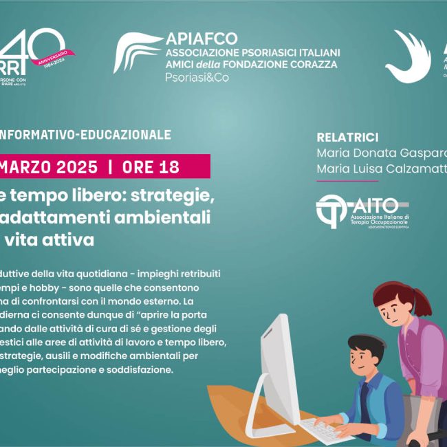 Venerdì 21 marzo, alle ore 18.00, si terrà il webinar informativo-educazionale “Lavoro e tempo libero: ausili e strategie per raggiungere l’autonomia quotidiana”, or