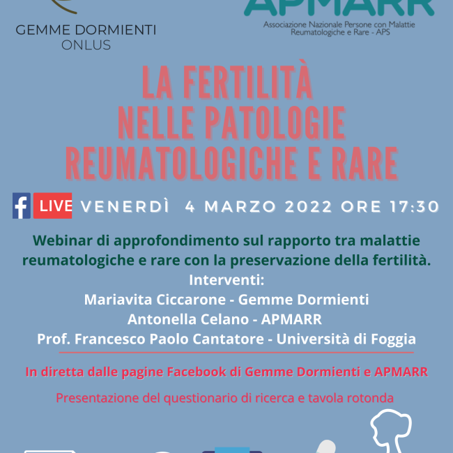 La fertilità nelle patologie reumatologiche e rare – webinar online 04/03/2022