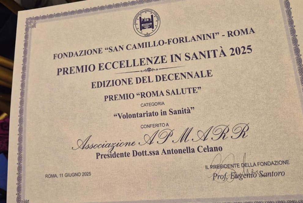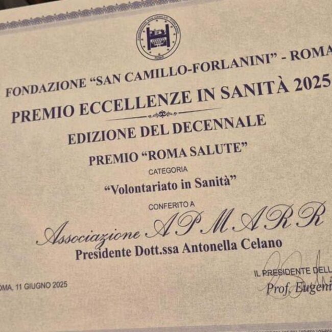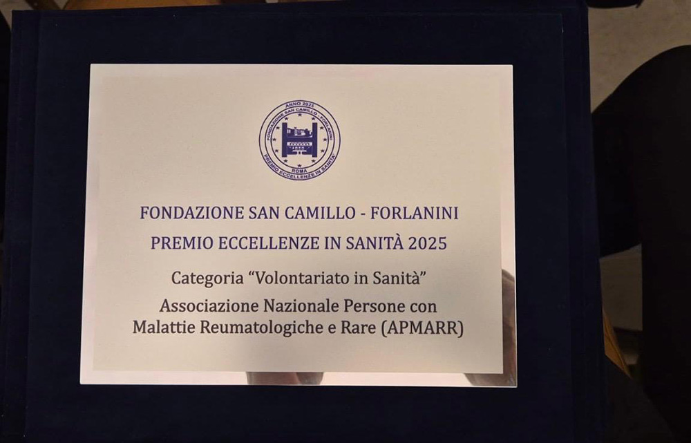 APMARR – Associazione Nazionale Persone con Malattie Reumatologiche e Rare APS ETS, l’associazione pazienti che opera, a livello nazionale, per la tutela e la difesa del diritto alla salute delle persone affette da patologie reumatologiche e rare, ha conquistato il premio “Eccellenze in Sanità 2025” nella sezione “Roma Salute” per la categoria “Volontariato in Sanità”. Il prestigioso riconoscimento, giunto alla sua decima edizione, è stato assegnato dalla Fondazione “San Camillo – Forlanini” di Roma presieduta dal Prof. Eugenio Santoro su indicazione del proprio comitato scientifico, diretto dal Prof. Giovanni Minisola ed è stato consegnato e ritirato direttamente da Antonella Celano, presidente APMARR nel corso di una cerimonia celebrativa che si è svolta a Roma in Campidoglio presso la Sala della Protomoteca. L’evento di premiazione si è fregiato dell’adesione del Presidente della Repubblica Sergio Mattarella ed è stato condotto e presentato da Livia Azzariti. APMARR – Associazione Nazionale Persone con Malattie Reumatologiche e Rare APS – ETS è un’Associazione di Promozione Sociale che, da oltre 40 anni, è impegnata, sul territorio nazionale, nella tutela e nella difesa del diritto alla salute delle persone con patologie reumatologiche e rare, perseguendo la sua mission che è quella di migliorare la qualità dell’assistenza per migliorare la qualità della vita. Inoltre, da alcuni anni APMARR dedica gran parte della propria attività alle patologie reumatologiche in età pediatrica. Si propone, inoltre, come operatore di advocacy, affinché le persone affette da tali patologie, altamente invalidanti se non diagnosticate e curate precocemente, trovino il giusto riconoscimento, l’appropriata dignità e la necessaria attenzione da parte delle autorità sanitarie, della società civile, dell’opinione pubblica e della classe politica. In Italia sono oltre 5 milioni le persone con malattie reumatologiche, quasi il 10% della popolazione italiana, di cui circa 700mila con patologie severe che ne compromettono fortemente la qualità della vita.